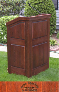 Last year, one fateful night, my parents returned from a town meeting and mentioned how the town moderator, Charlie Kaye, complained about the podium he had to use at our new high school.  It was very plain and simple—a slim tower that rose up from a square base to an angled top, no more than 12” wide.  As soon as I heard this I said, “How about I build one for the school?”  For the remainder of that week I searched on line to see different designs and styles, as well as dimensions—and price.  When I related my idea to the principal of my school, he said it would be great.  A few days later, I met with the principal and vice principal to show them a sketch of my proposed design, and to discuss how everything would work out.  Not only would they get a solid wood lectern, but I told them there would be no labor charge; the school would only have to pay for the materials.  To top all that, I mentioned there would be two wheels on the bottom so that the lectern could be tilted onto them for easy mobility.  At the end, I told them the price tag, just below $300.  One of the things that prompted me to take up this project was that it would benefit Charlie Kaye, the town moderator, and my school, which had a tight budget.