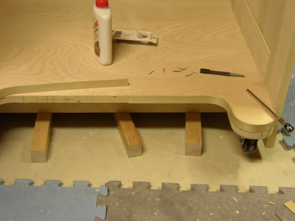 After that meeting, it was finally time to start the job, I had the go ahead.  Weekends, half day Wednesdays, and vacations, I was downstairs in the shop whenever I could afford the time.  In the blink of an eye, the entire lectern was ready to glue together—and I had my first close call.  I had glued the two side frames together.  Now it was time for the front—the phone rang, so I took the call.  Then I returned to my business.  After I was done I realized, I forgot to put the two raised panels in the front!  I fought with the glue to pull the frame apart, re-glued, and re-clamped...now I was done.  When it was finished (April vacation), I was extremely relieved and proud.  It looked great (and still does).  Upon delivery, I brought with me an invoice to present to the school as well.  After labor was deducted (66 hours) the final cost came out to be $285.34, not bad for what could have set the school back over $2,000, from what I came across on line—but mine has raised panels.