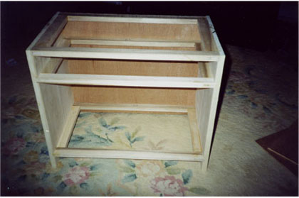 My mom had been looking for a cabinet that would fit under the sill of a window on our first floor. Since she was unable to find one, I took advantage of the opportunity. My goal was to have the cabinet finished for Christmaswhat my parents received was the carcass [2] and a pile of boards cut to specific lengths. In the end it turned out to be a great learning experience. The cabinet is built from poplar. I designed and constructed it myself in a small shop in our basement, and with my continuing to add more tools and machinery (I’ve spent my own green) the small shop is becoming smaller and smaller. The raised panel doors were made using a table saw. The three rectangles holding the sides together are mortised and tennoned together. I also used dovetails, which were hand cut, for the drawer construction. Best of all, the cabinet does what it is supposed to dofit under that windowsill.